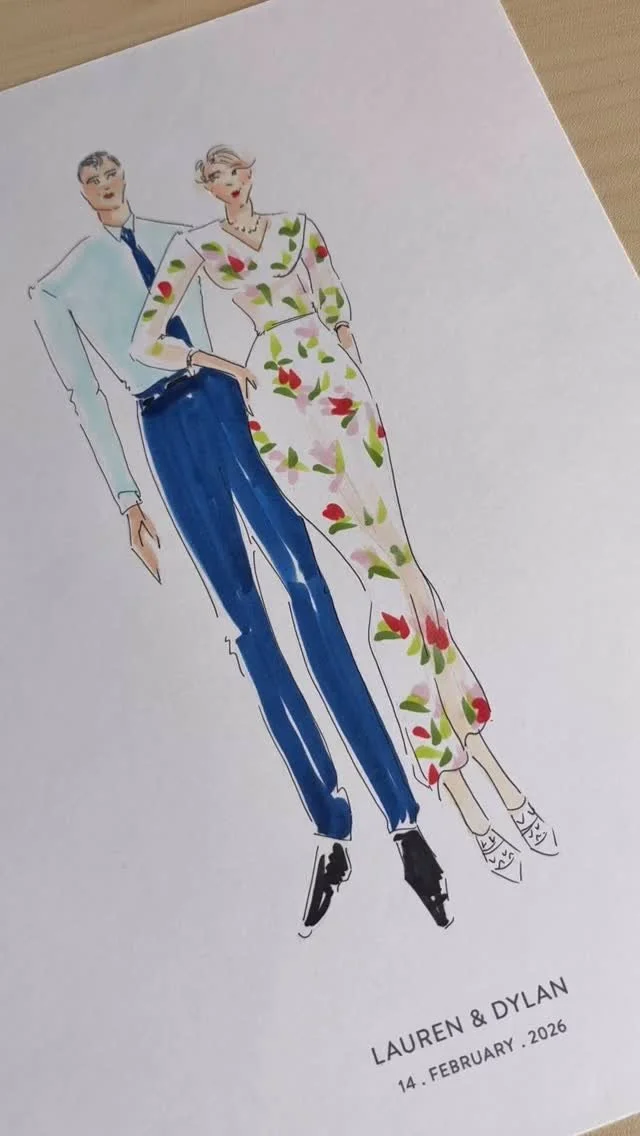 A keepsake worth KEEPING. A hand-drawn, personalised fashion illustration, destined for a frame, NOT the bin.